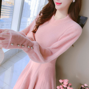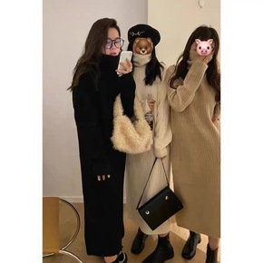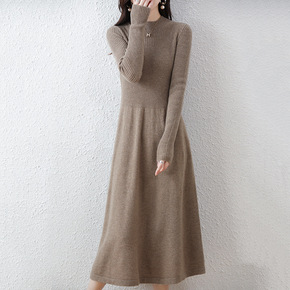 气质打底针织连衣裙女秋冬新款法式配大衣过膝毛衣裙内...