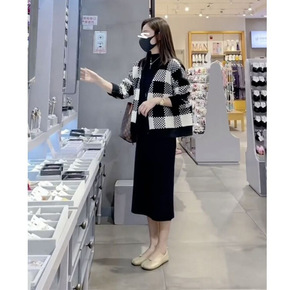 秋装2022年新款法式中长款过膝毛衣长裙配大衣内搭...
