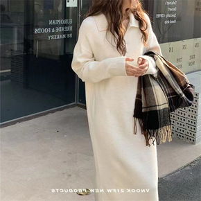 连衣裙polo领打底裙秋冬爆款配大衣长款过膝慵懒风...