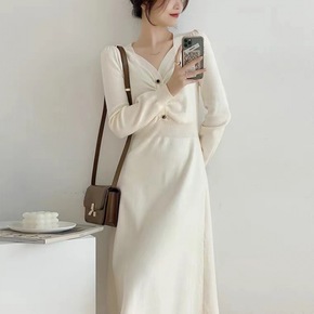 早秋款2022年新款女装初秋季毛衣连衣裙子春秋冬季...