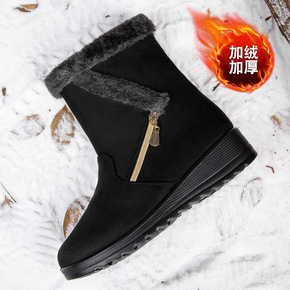 2022冬季新款亚马逊保暖女式雪地靴侧链反绒皮43...