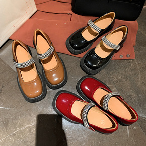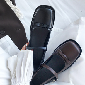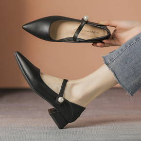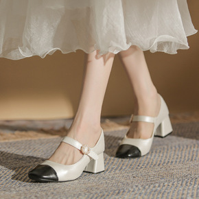 真皮玛丽珍女鞋舒适不累脚粗跟约会女鞋2022秋季...
