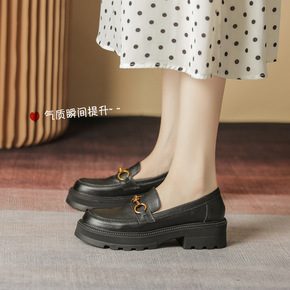 真皮女鞋秋季休闲搭配小皮鞋百搭圆头软底不磨脚乐福鞋...