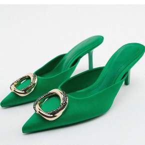 8088-18凉鞋设计感小众粗跟尖头凉拖一字带透明...