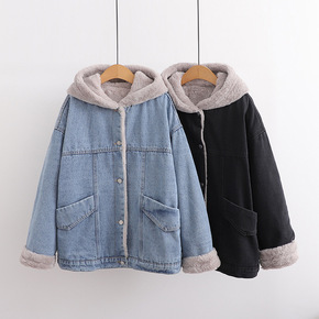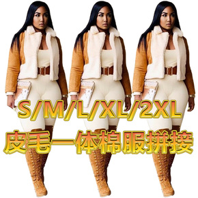 2021年秋冬装 学院风拼接加厚柔软毛毛绒棉服连帽...