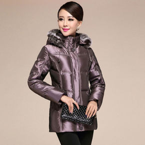妈妈装冬装棉袄羽绒棉服修身外套棉衣短款真毛领中老年...