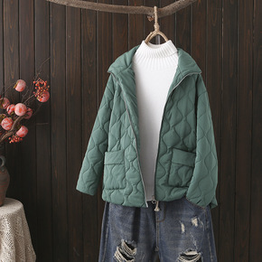 2021年秋冬装 日系翻领宽松休闲胖MM大码棉服纯...
