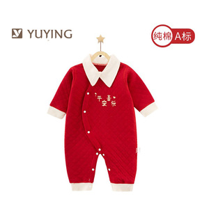 婴儿衣服春秋套装宝宝连体满月服棉衣冬季红色棉服男加...