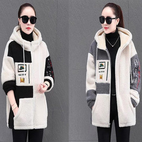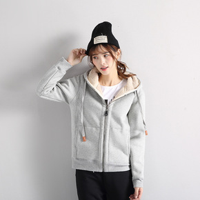 冬季羊羔绒加绒连帽卫衣女长袖加厚保暖上衣休闲拉链韩...