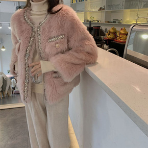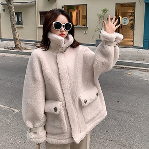外套女2021新款冬装宽松立领羊羔绒皮毛一体加厚加...