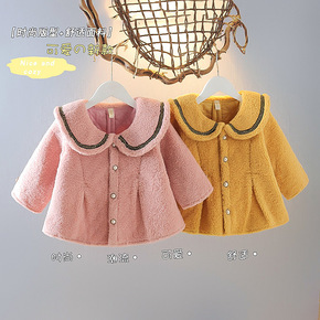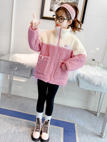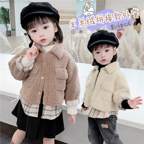冬款女童小香风羊羔绒假两件拼接上衣翻领宽松棉秋冬款...