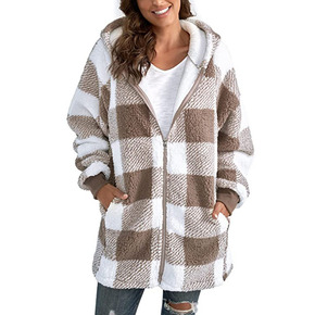 亚马逊冬季新款2021欧美女装羊羔绒连帽衫毛绒夹克...