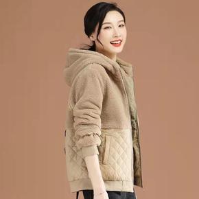 连帽皮毛一体羊羔毛外套女冬加厚2021年新款羊羔绒...