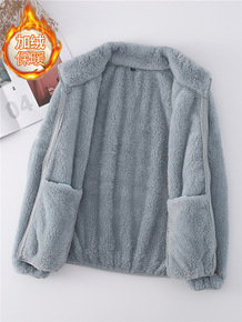 欧货时尚羊羔绒内里加厚保暖宽松西装领开衫外套女20...