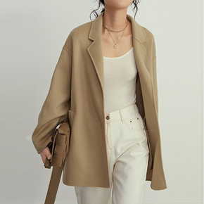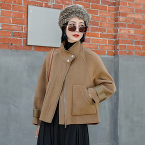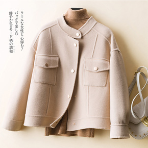 短款毛呢外套女秋冬装韩版上衣2021年新款双面呢羊...