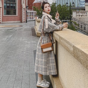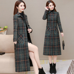 格子毛呢外套女春2022年新款气质时尚小个子中长款...