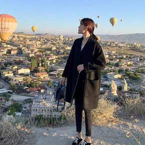 双面羊绒大衣女中长款2021年新款秋冬装赫本风手工...