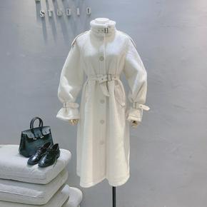 冬季宽松型西装领纯腰带气质通勤羊毛中长人字通勤毛呢...
