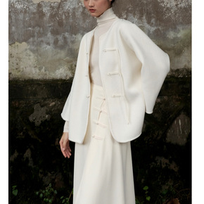 新中式全手工全澳毛盘扣短款毛呢外套 小众白色呢大衣...