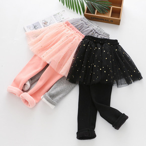 2020童装冬季新款女童加绒裙裤加厚保暖裤亮片网纱...