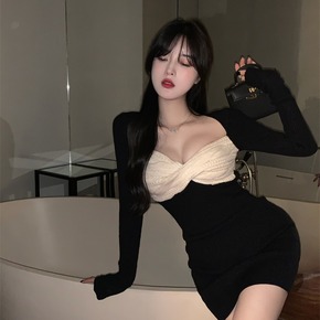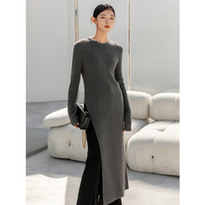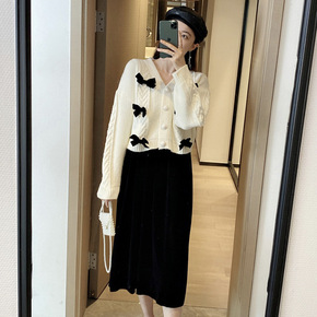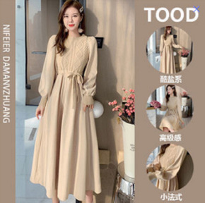 秋冬季温柔系穿搭针织连衣裙女2022新款冬裙收腰配...
