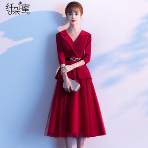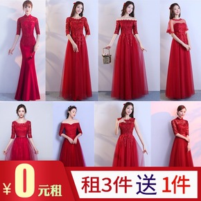 出租2021冬季新款红色伴娘服敬酒服新娘宴会主持长...