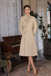 旗袍2022年新款秋冬毛呢长袖冬季加厚保暖改良版中...