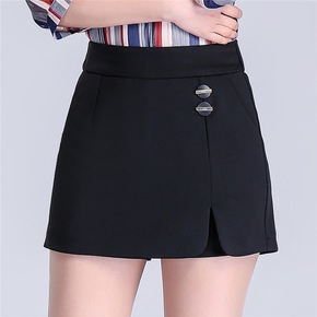 短裤裙女春秋2022新款高腰宽松外穿中年妈妈松紧黑...