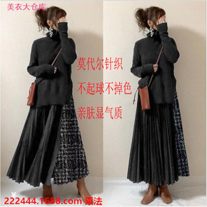 跨境2021春秋冬新款日韩女装时尚拼接半身裙套裙针...