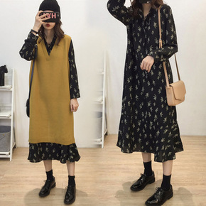 厂家直供秋冬装2021年新款法式碎花长袖连衣裙子秋...
