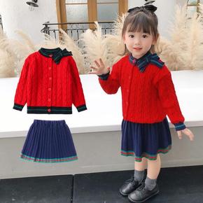 女童毛衣短裙套装裙秋冬新款冬装时髦中大童小香风针织...