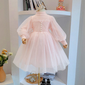 女童毛衣连衣裙秋冬款新款洋气儿童公主裙冬季灯笼袖女...