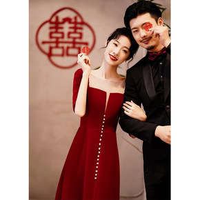 敬酒服新娘2021新款冬季丝绒酒红色订婚结婚答谢宴...