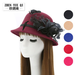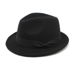 秋冬男女礼帽黑色蝴蝶结JAZZ爵士帽毛呢帽子小卷檐...