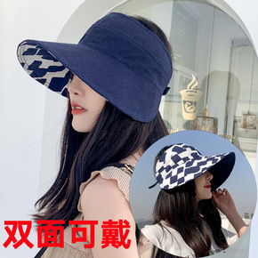 黑胶空顶帽子女士夏大沿防晒镂空遮阳帽韩版潮骑车防紫...