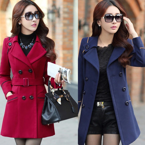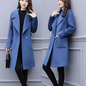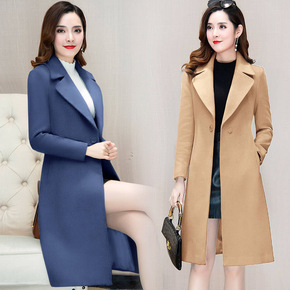 [ins] 撞色加厚气质通勤长款西装领腰带女式羊毛...