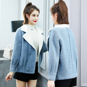 秋冬新款外套女2022百搭宽松皮毛一体麂皮绒短款羊...