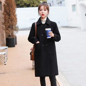 双排扣毛呢外套女2022冬装新款淑女娃娃领中长款直...
