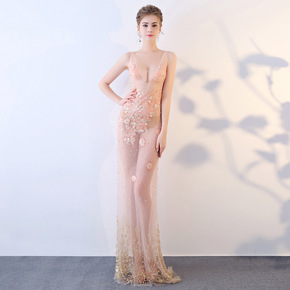 百秀名媛G925/性感透视装礼服晚装蕾丝手工修身深...