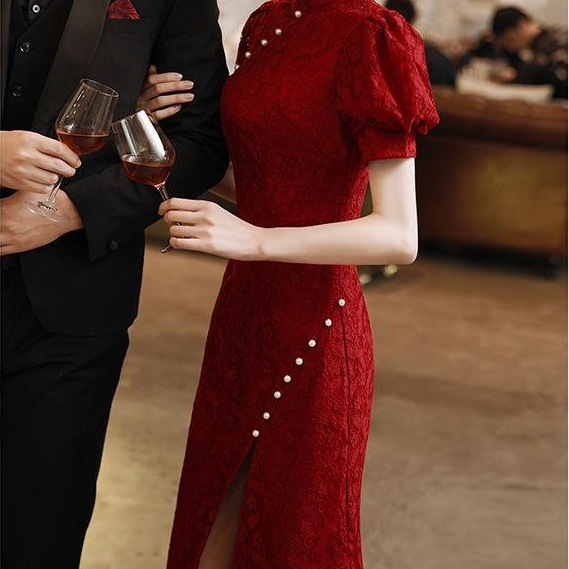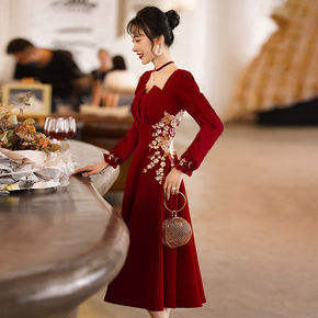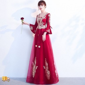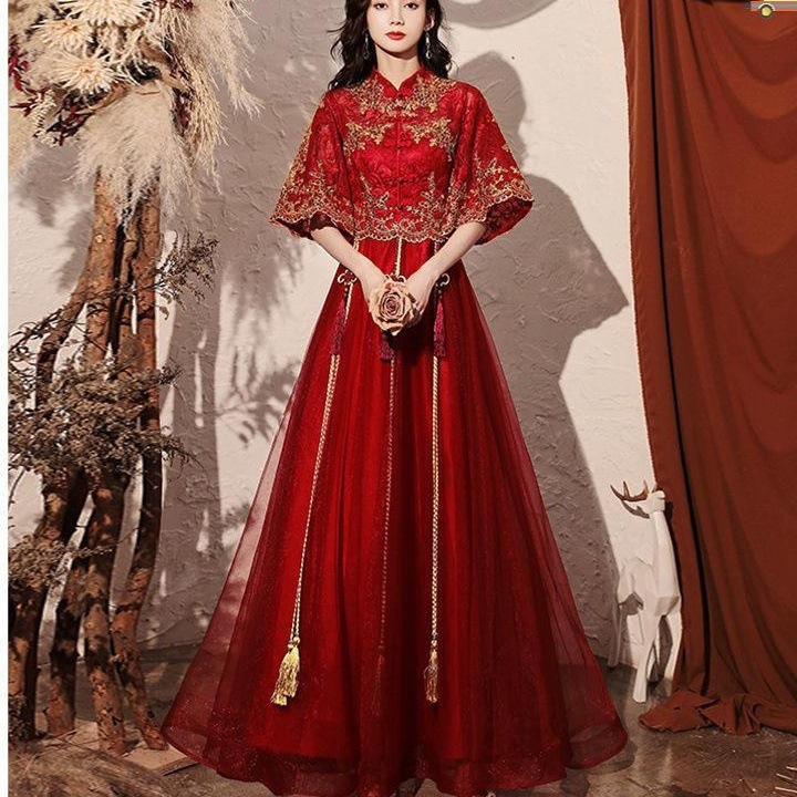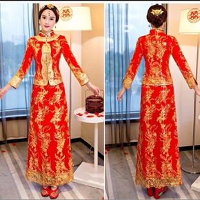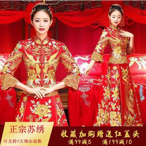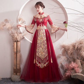 包邮新娘敬酒服旗袍秀禾服中式婚纱礼服红色长修身款嫁...