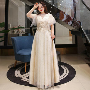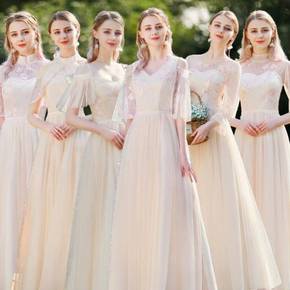 伴娘服2022新款杏色姐妹裙婚礼服大码显瘦仙气质小...