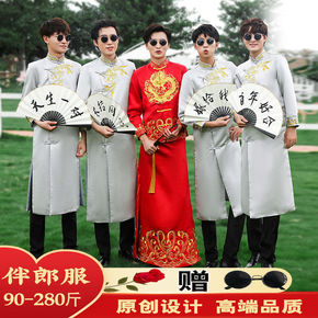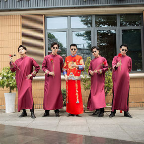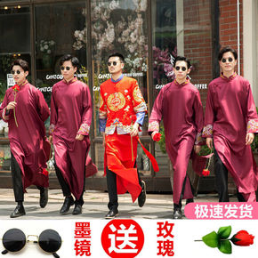 伴郎服中式结婚礼服中国风兄弟团服装婚礼相声服大褂伴...
