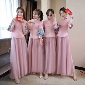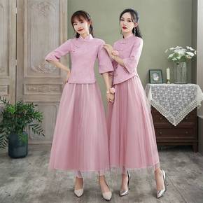 中式伴娘服春秋新款简约大气中国风秀禾姐妹团婚礼粉色...