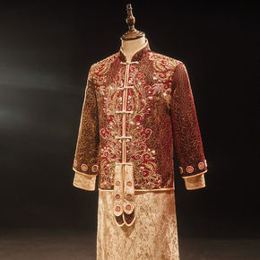 秀禾服男士新郎装中式礼服香槟色敬酒服秀和服2022...