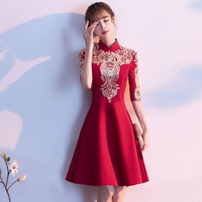 伴娘服2022春夏婚礼中式中国风气质姐妹小礼服裙女...
