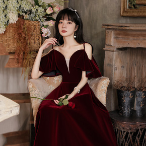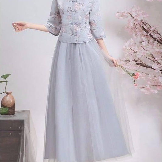 2022中式伴娘服长款灰色保守保暖伴娘团伴娘礼服复...