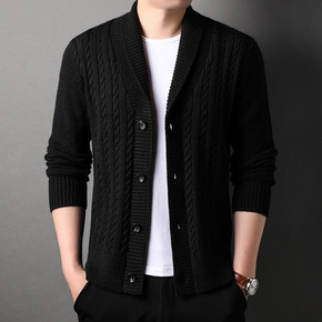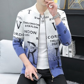 针织开衫男士潮流韩版帅气休闲加厚外套青年春秋季水貂...