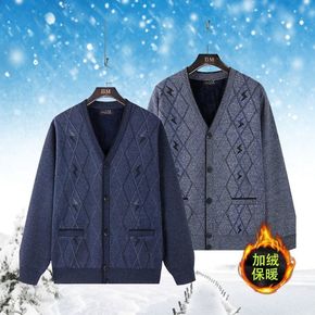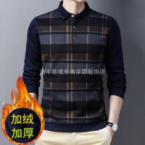 印花雪尼尔圆领长袖加绒加厚中老年父亲装套头休闲韩版...