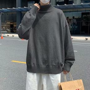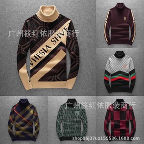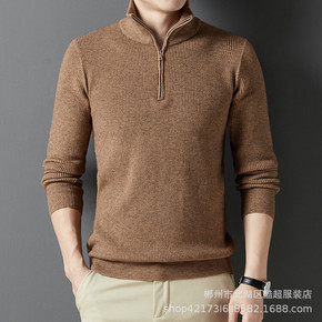 秋冬新款长袖休闲合体型中年男款半高领加厚细毛线直筒...