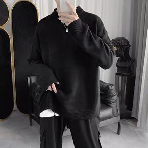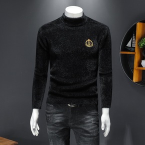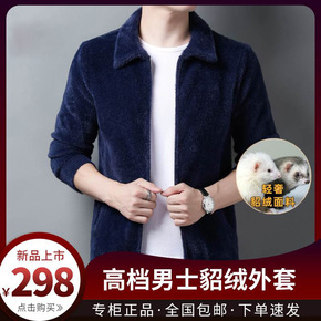 保暖针织打底衫外套冬季水貂绒男品质翻领套头加厚男士...